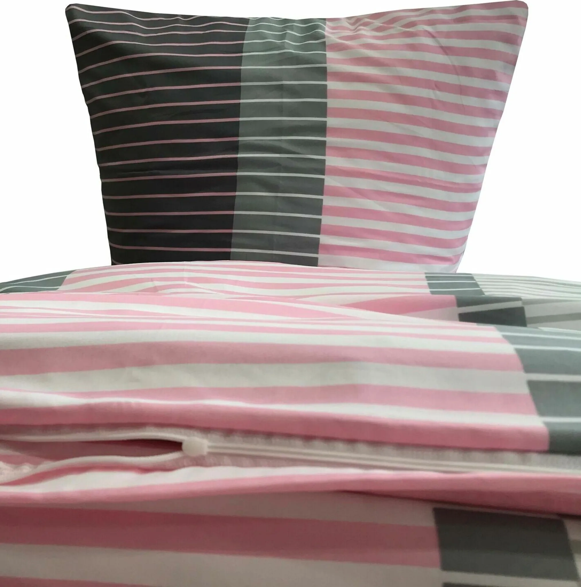 Die Mikrofaser-Bettwäsche „Melissa Rosa“ von Leonado Vicenti kombiniert stilvolles Design mit hohem Schlafkomfort. Das moderne Streifenmuster in Grau- und Rosatönen verleiht dem Schlafzimmer eine ruhige, elegante Atmosphäre. Hergestellt aus hochwertiger Mikrofaser überzeugt die Garnitur durch ihre weiche Haptik, Atmungsaktivität und pflegeleichte Eigenschaften – ideal für den täglichen Gebrauch.