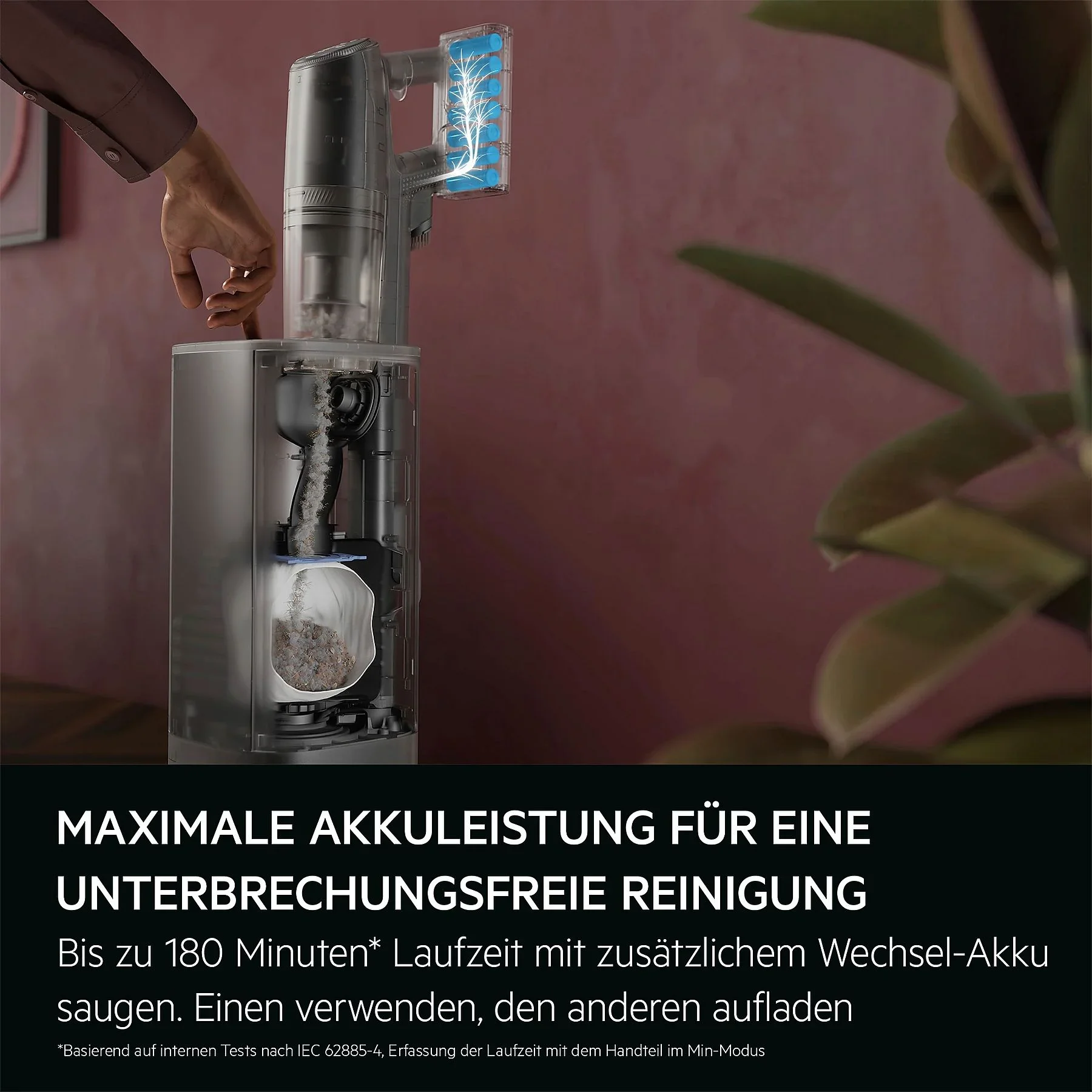 Auto-Modus • All-in-One Absaug- und Pflege-Station • Wechselakku bis 180 Min • Multi-Zyklon • LED-Düse