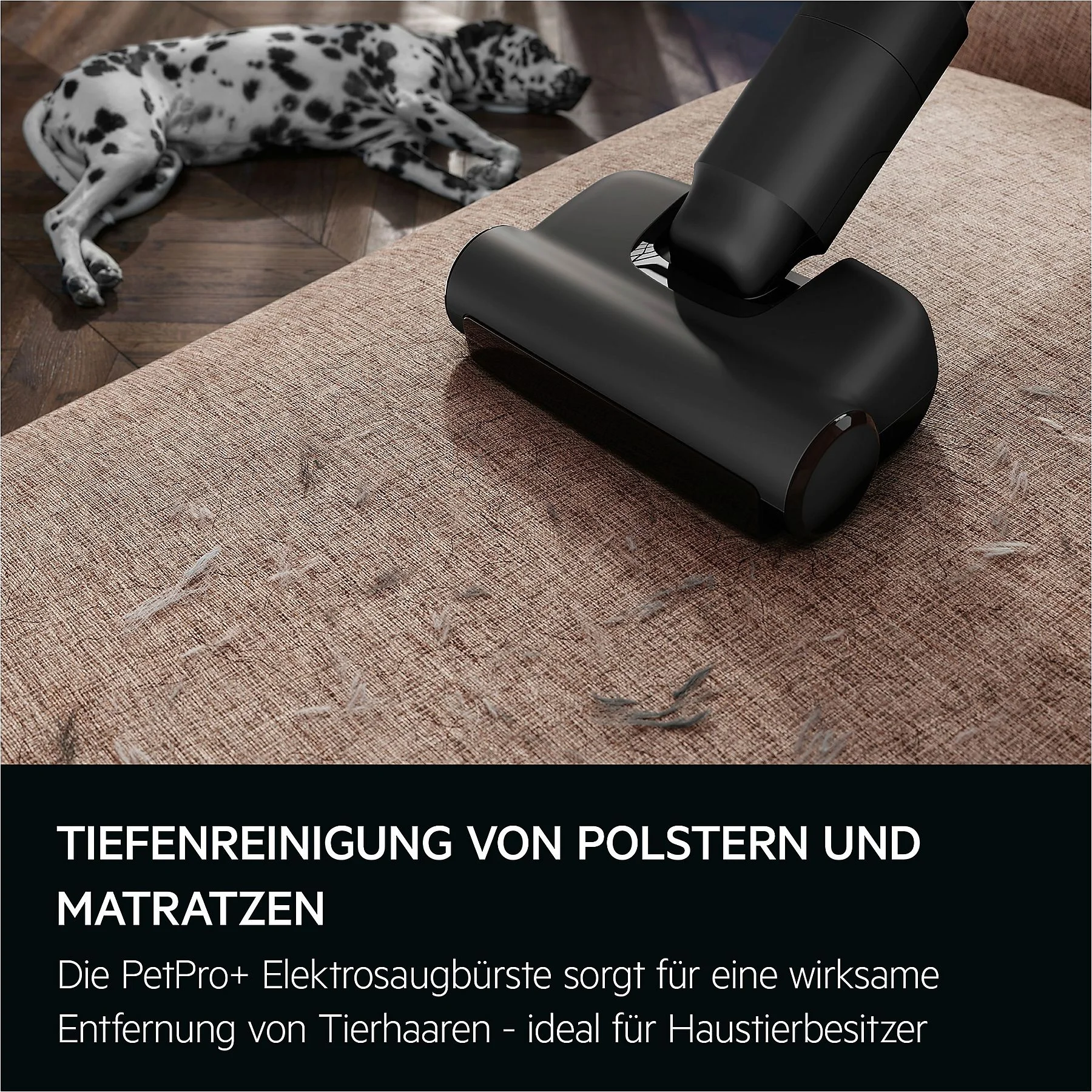 Die All-in-One Multifunktions-Station ist Aufbewahrung, Ladeplatz und automatische Absaugstation zugleich. Der Staubbehälter wird hygienisch in einen 3,5-l Anti-Allergy S-Bag® geleert, während Filter und Gerät gepflegt werden können. Mit Wechselakku erreicht der Handsauger bis zu 180 Min Laufzeit und ermöglicht große Flächenreinigung ohne Unterbrechung. Für Haustierhaushalte steht eine PetPro+ Elektrobürste zur Verfügung.