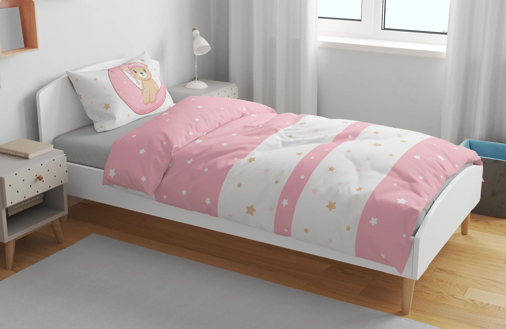 Baby Bettwäsche-Set „Teddy & Sterne“ Rosa 100×135 cm – One-Home