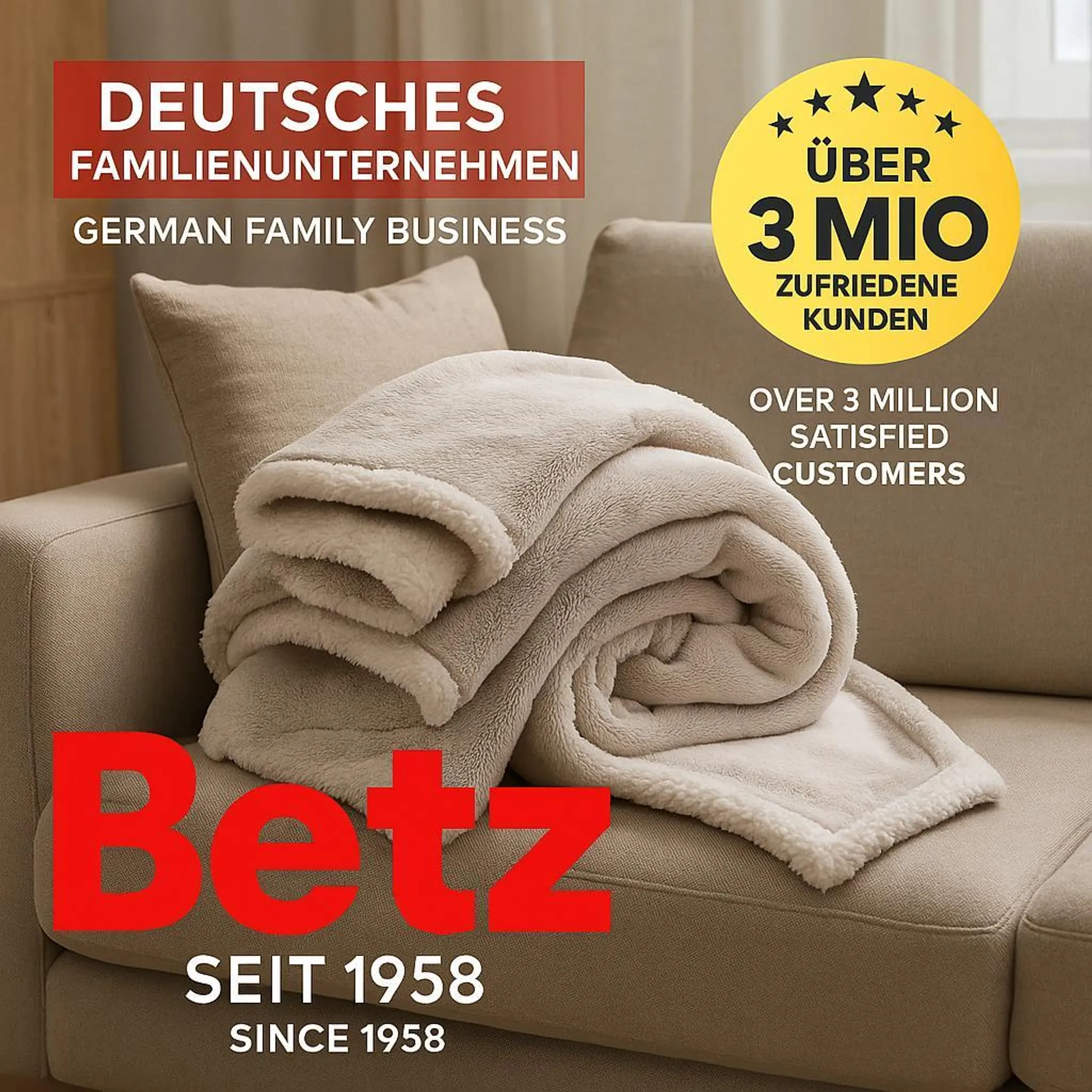 Die Luxus Fleecedecke von Betz bietet kuschelige Wärme und höchsten Komfort für gemütliche Stunden. Mit ihrer weichen, doppelseitigen Oberfläche lädt sie zum Einkuscheln ein – perfekt für Sofa, Bett, Terrasse oder den nächsten Filmeabend.