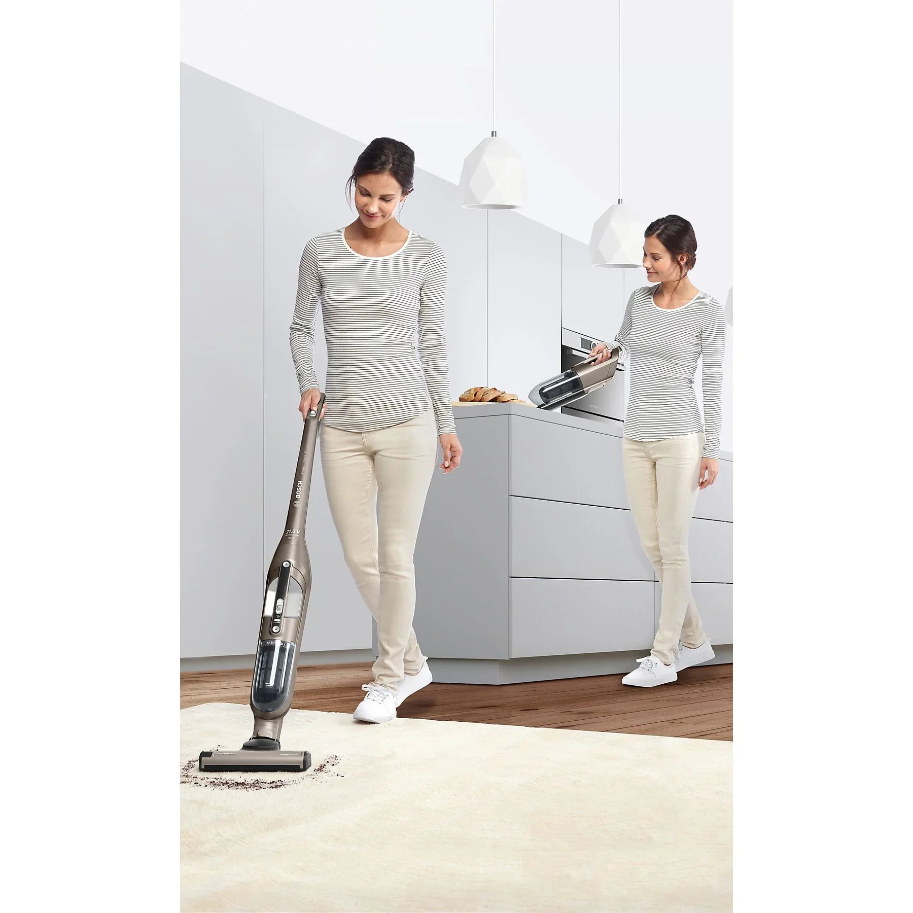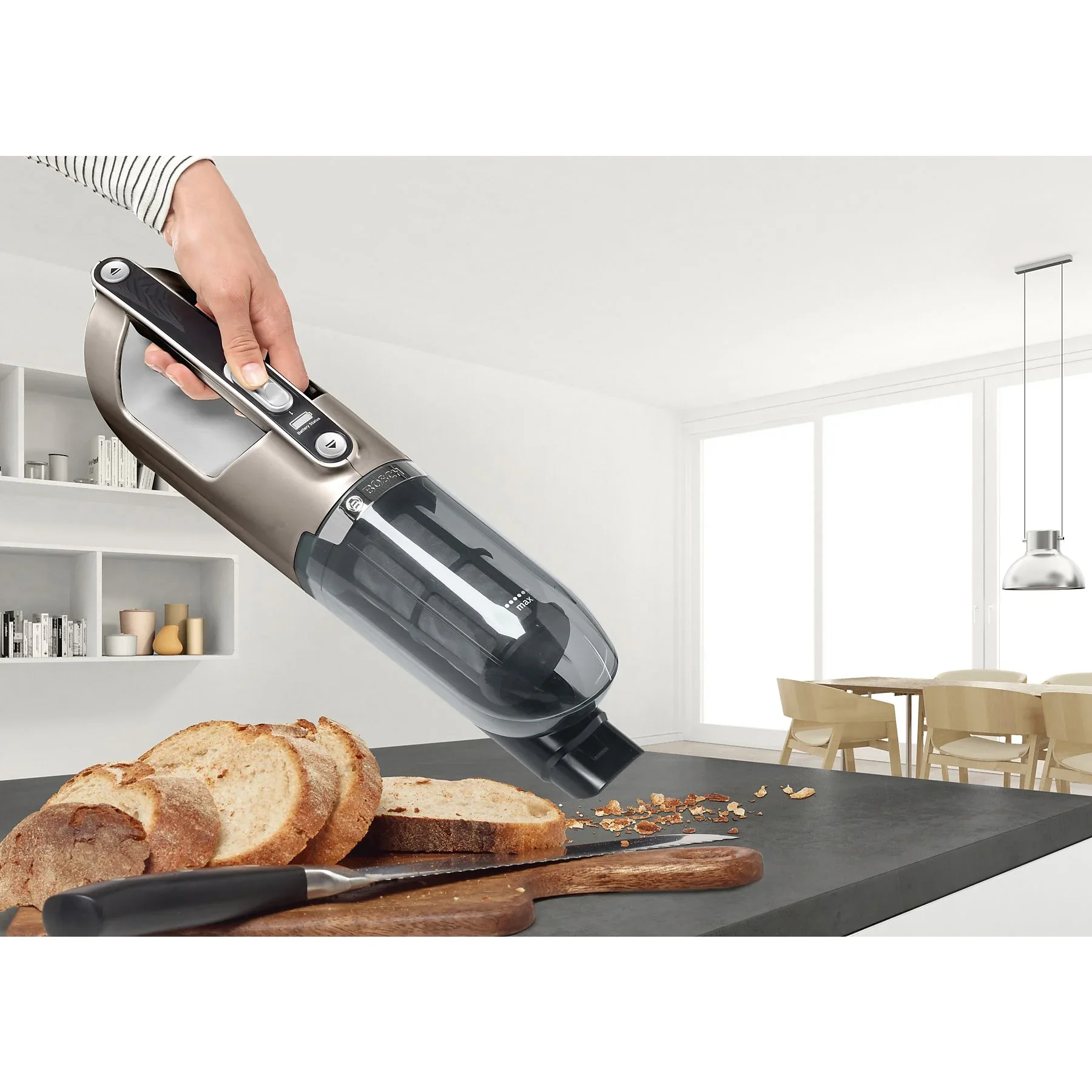 Highlights: 2-in-1 Akku- und Handstaubsauger, integriertes Zubehör, RobustAir System, konstante Leistung bei voller Staubbox, selbststehendes Design, platzsparende Aufbewahrung, kabellos überall einsetzbar.