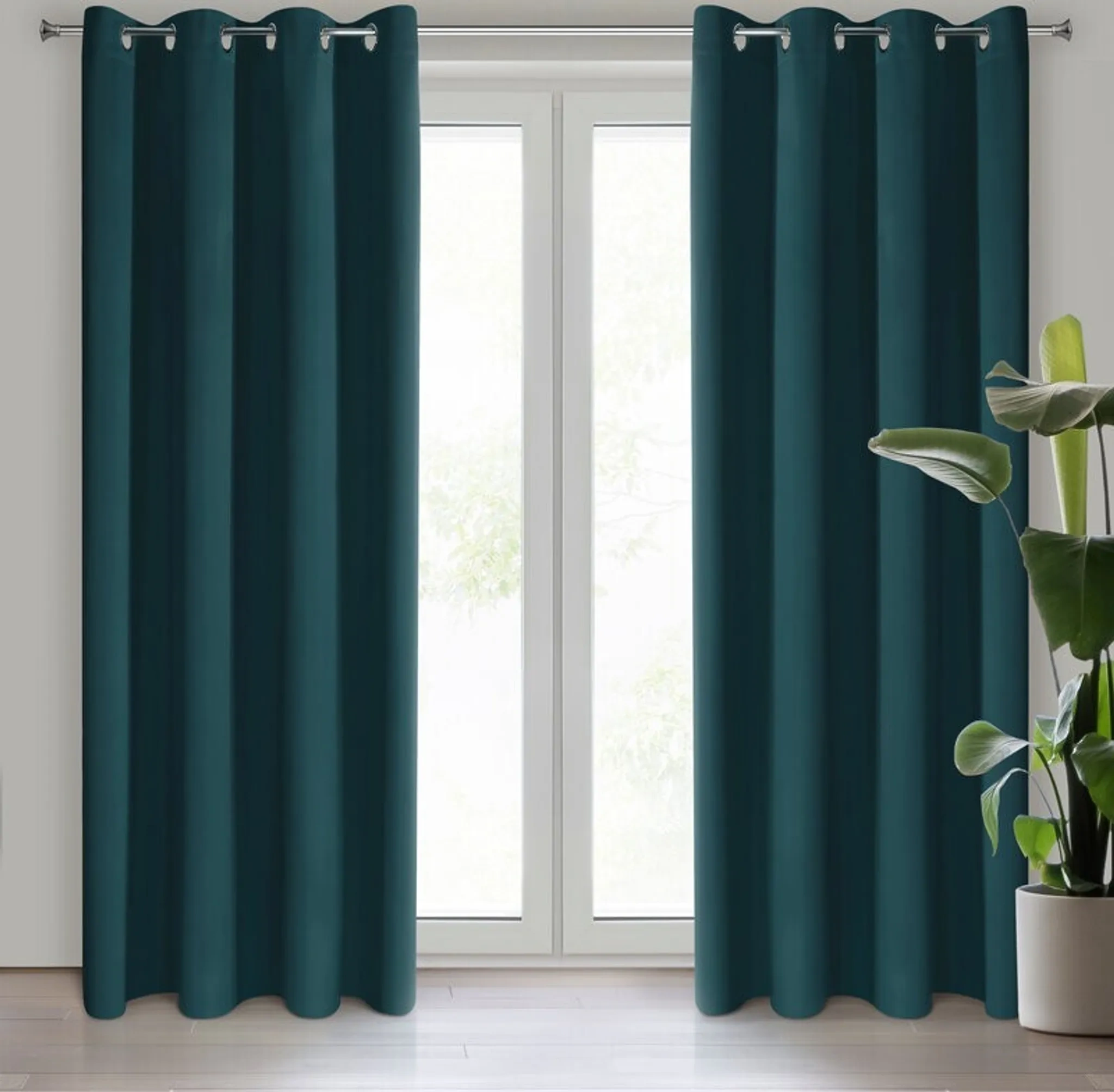 Dank praktischer Ösen lässt sich der Vorhang schnell auf die Gardinenstange schieben und bildet nach dem Aufhängen gleichmäßige, dekorative Wellen. Die kräftige Farbe Petrol setzt einen eleganten Akzent und fügt sich vielseitig in verschiedene Einrichtungen ein.