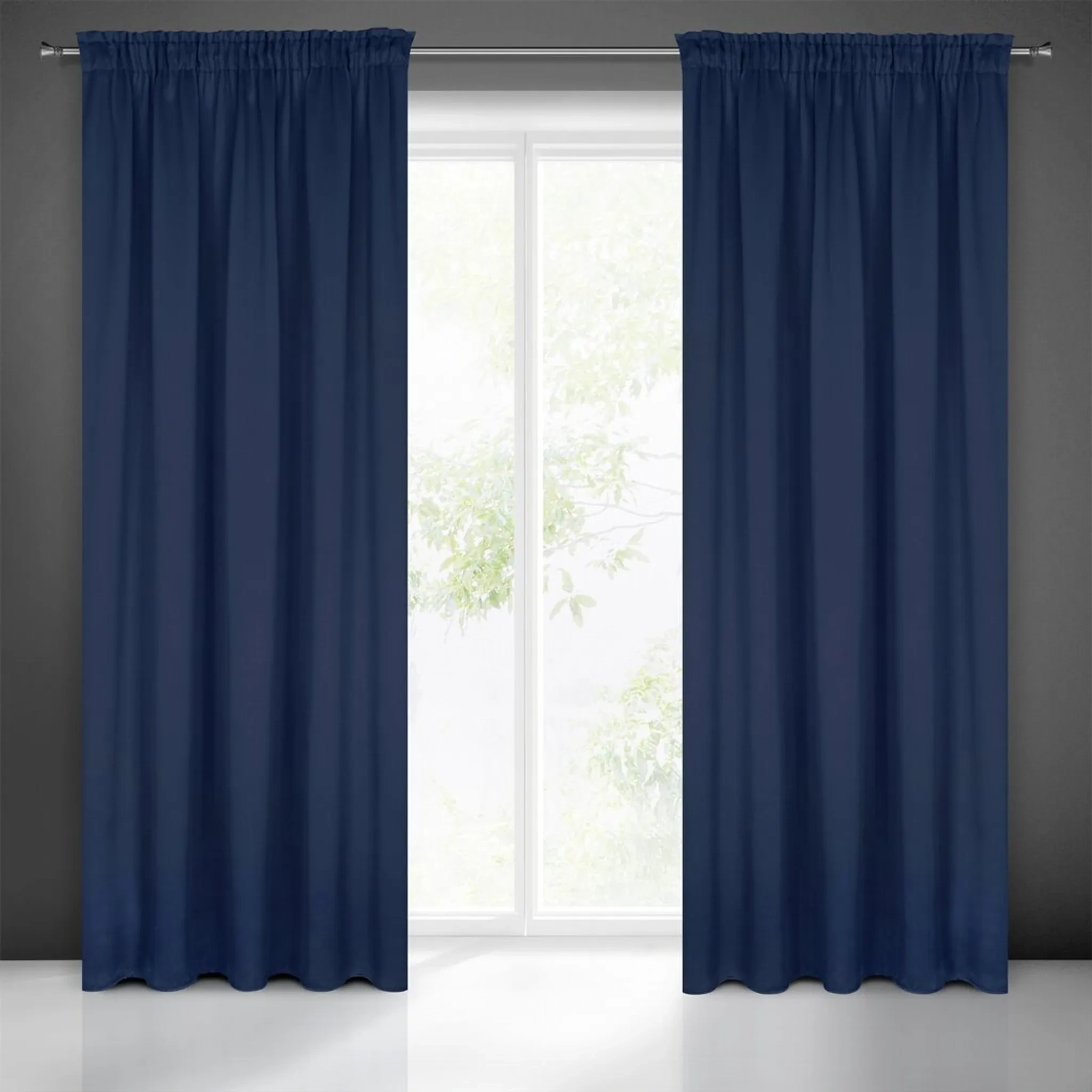 Der LOGAN Vorhang von Eurofirany in elegantem Marineblau bringt Ruhe und Raffinesse in jeden Raum. Der matte, dicht gewebte Stoff bietet einen hohen Verdunkelungsgrad von 70–80 % und sorgt für eine angenehme Atmosphäre, ideal für Schlafzimmer, Wohnzimmer oder Büroräume.