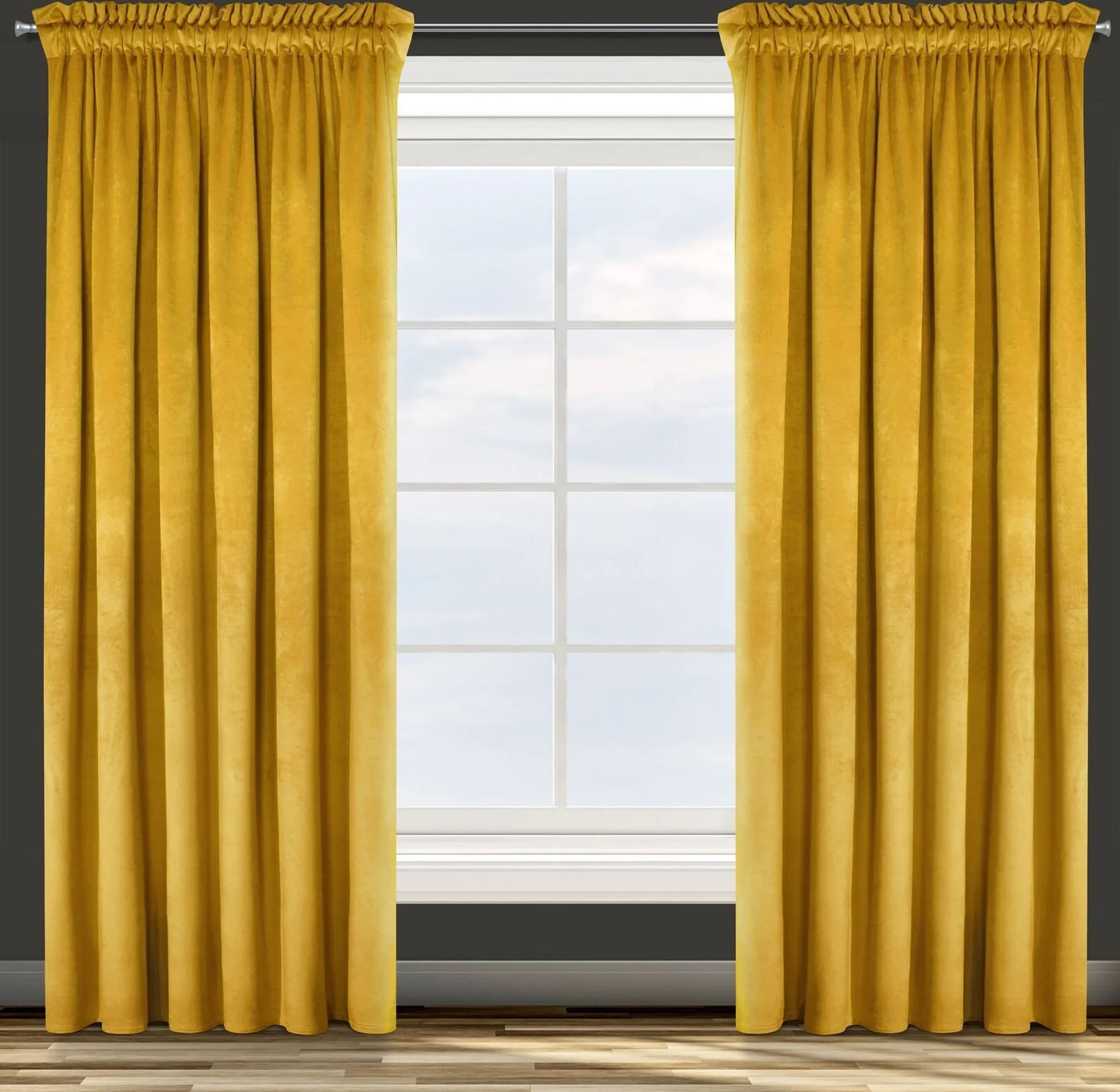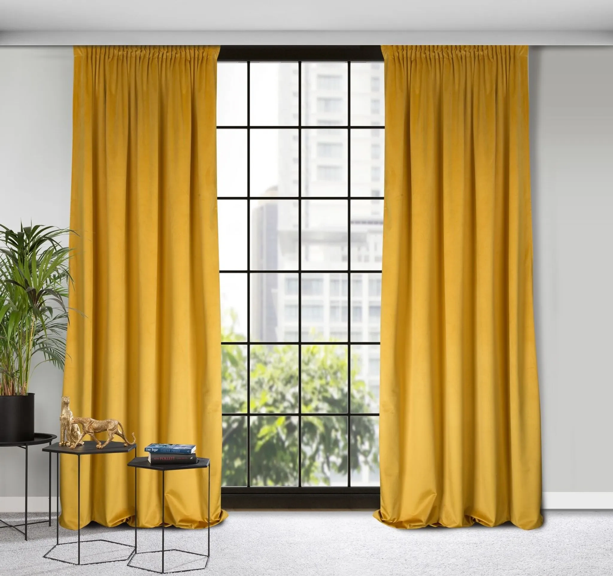 Der elegante Eurofirany Verdunklungsvorhang in warmem Gelb bringt mit seiner weichen, samtartigen Oberfläche und dem feinen Glanz ein stilvolles Ambiente in jeden Raum. Das dichte Material bietet hervorragenden Sichtschutz und schafft eine behagliche Atmosphäre.