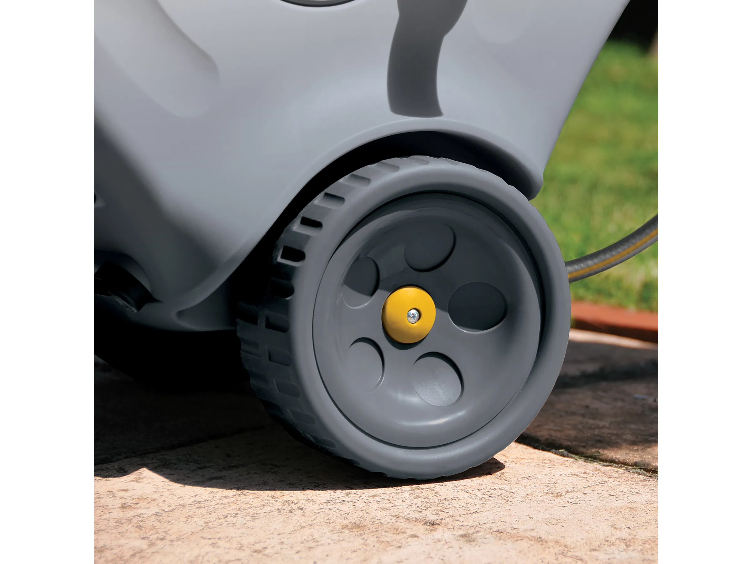 Das geschlossene Gehäuse schützt den Schlauch vor Witterung und Verschmutzungen. Nach dem Gebrauch sorgt der leichtgängige Aufrollmechanismus mit großem Handgriff und Schichtsystem für ein ordentliches, knickfreies Einlegen des Schlauchs. Zubehör wird direkt am Wagen verstaut – griffbereit und aufgeräumt.