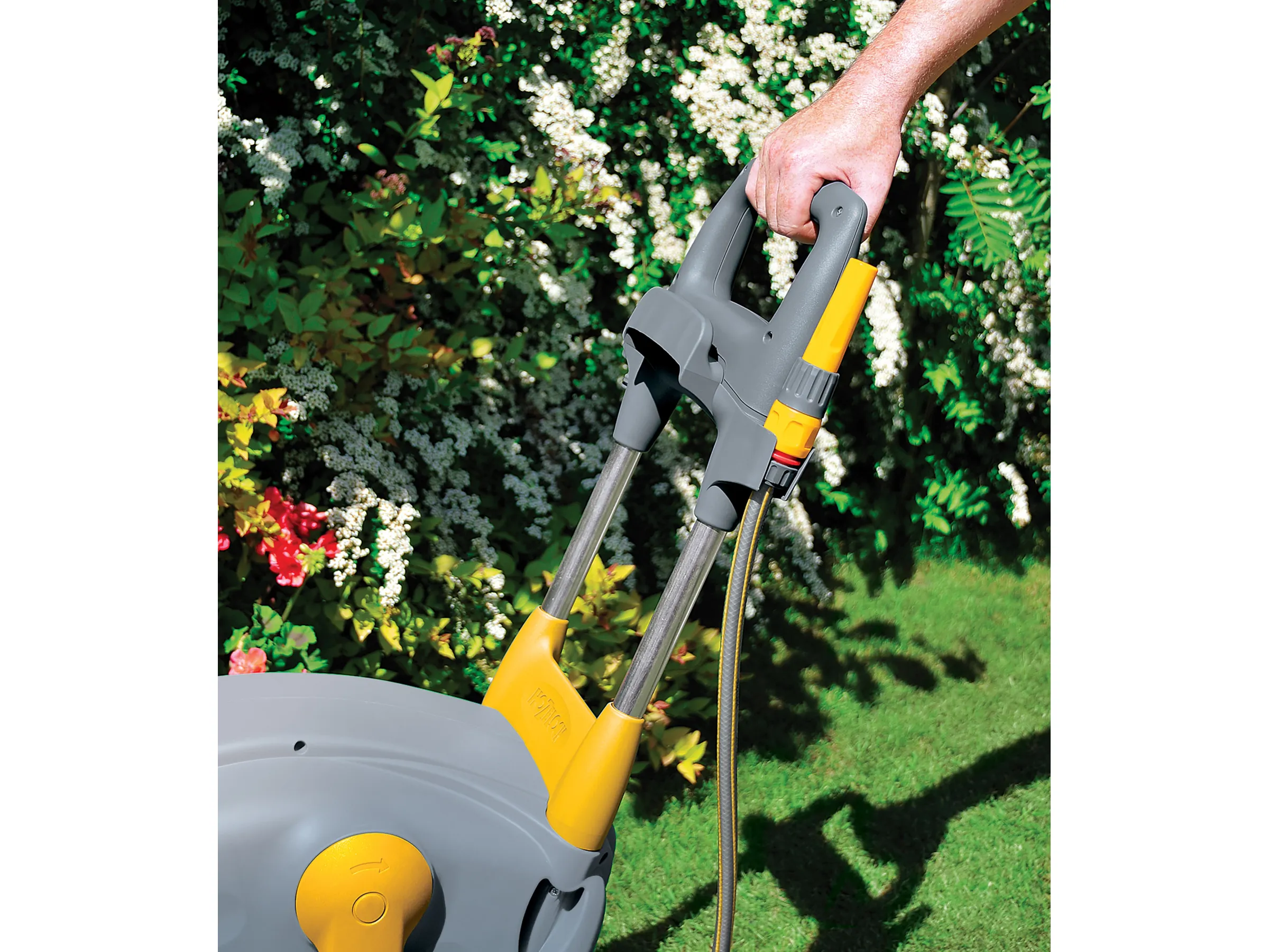 Der Fast Cart Schlauchwagen ist die mobile Lösung für eine komfortable Bewässerung mittelgroßer bis großer Gärten. Der 40 m Qualitätsschlauch ermöglicht einen großen Arbeitsradius, während die großen Räder und der robuste Ziehgriff ein einfaches Manövrieren im Garten erleichtern.