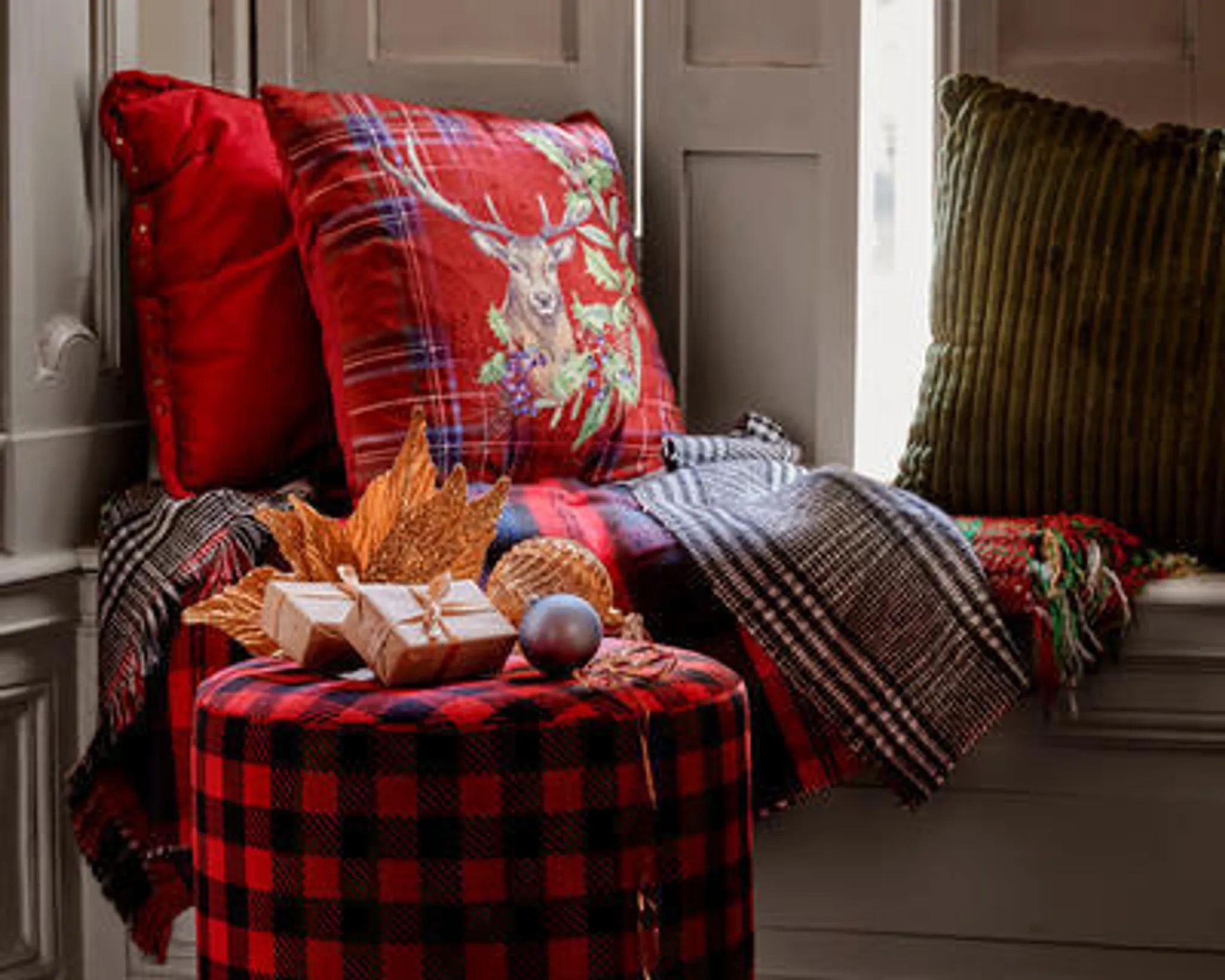 Highlights: Traditionelles Schottenkaro-Design, winterlich-weihnachtliche Farbgebung, ideal als Geschenk oder für gemütliche Abende auf dem Sofa.
