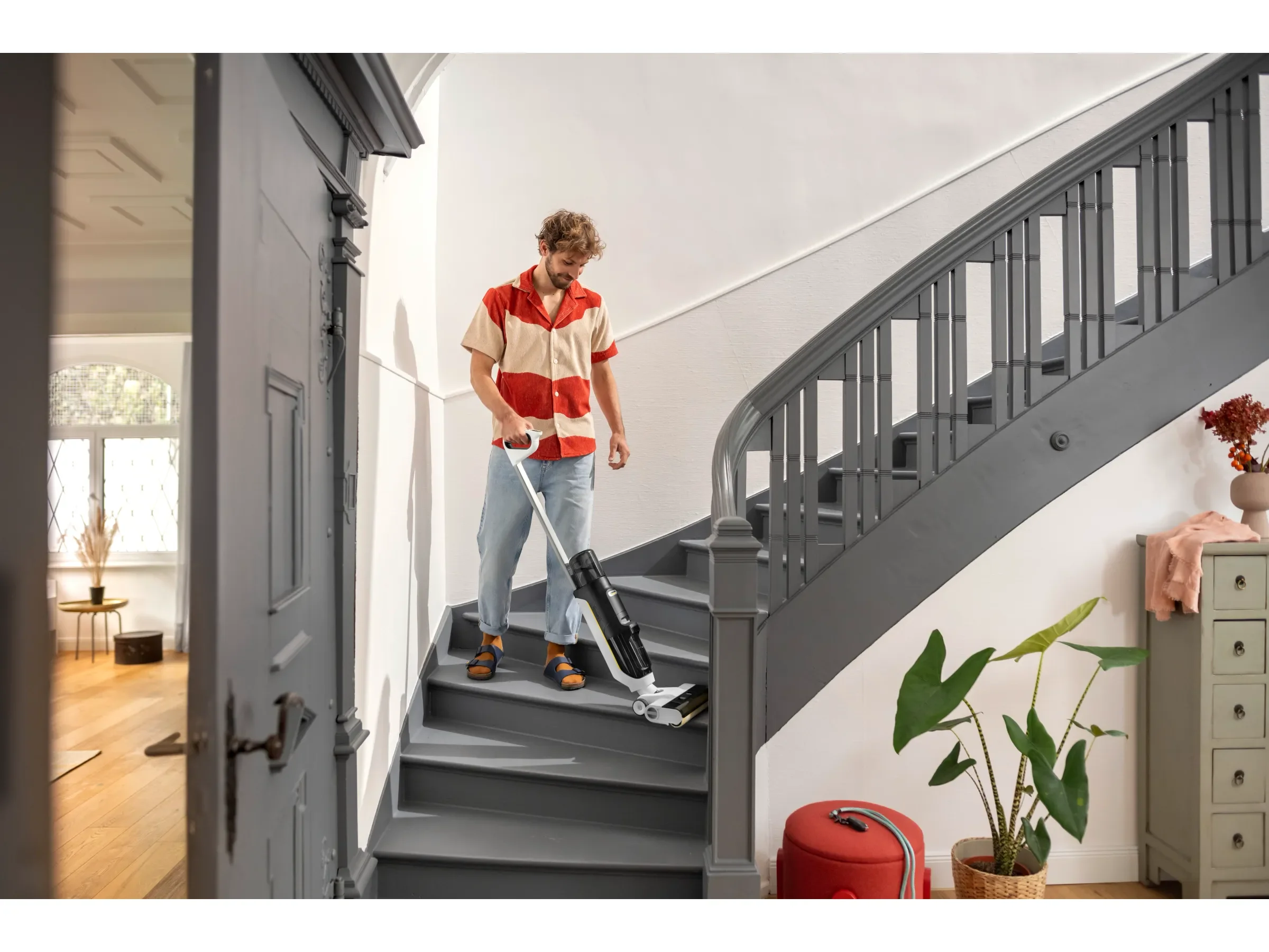 Highlights: 3-in-1 Reinigung, bis 130 m² pro Akkuladung, Advanced-Power-Modus, 500 Walzenumdrehungen/Min, HygienicSpin (99,9 % Bakterienreduktion), streifenfreie Hartböden, schnelle Trocknung, Teppichauffrischung im Trockenmodus, 2-Tank-System für hygienische Ergebnisse.