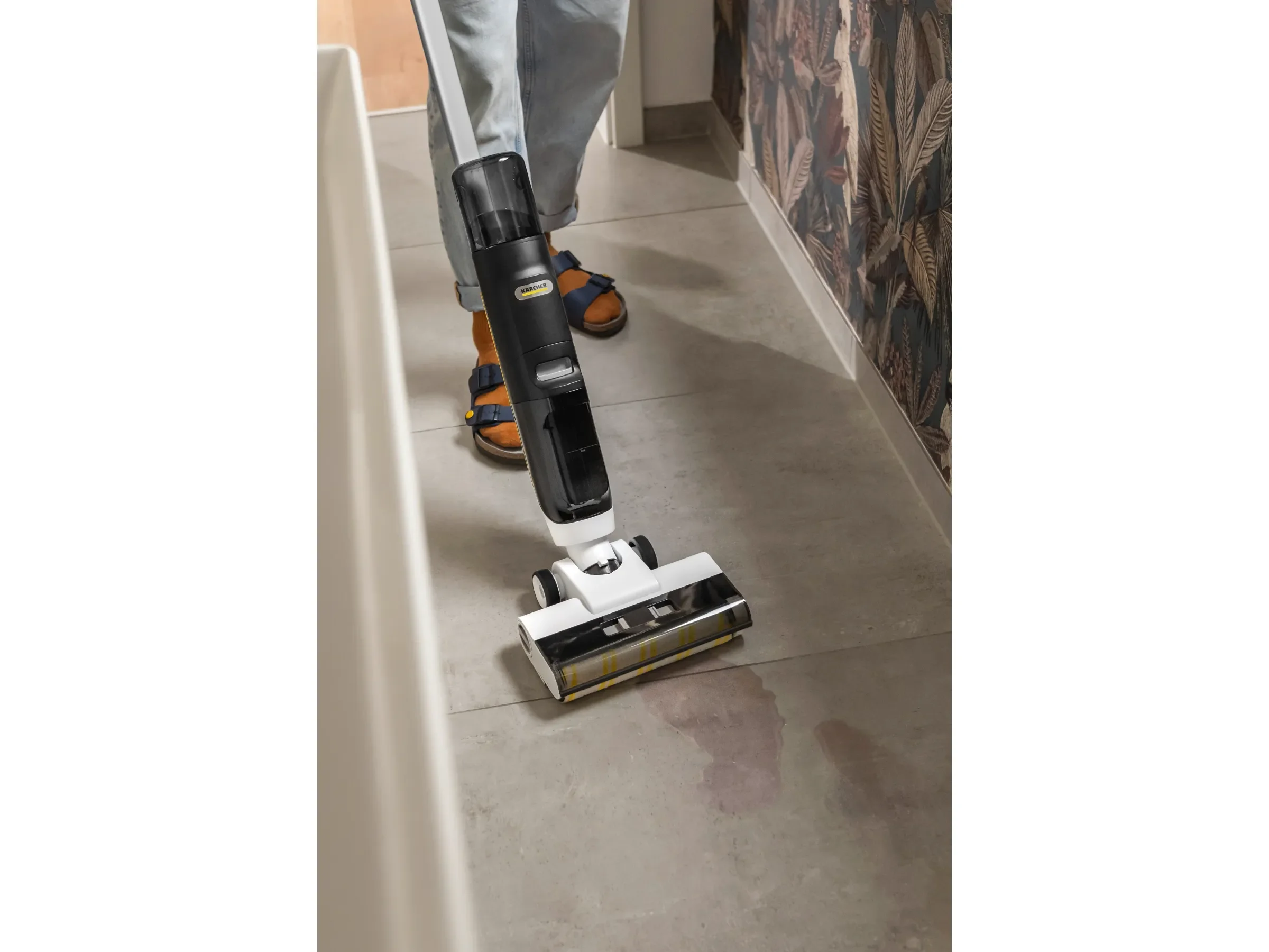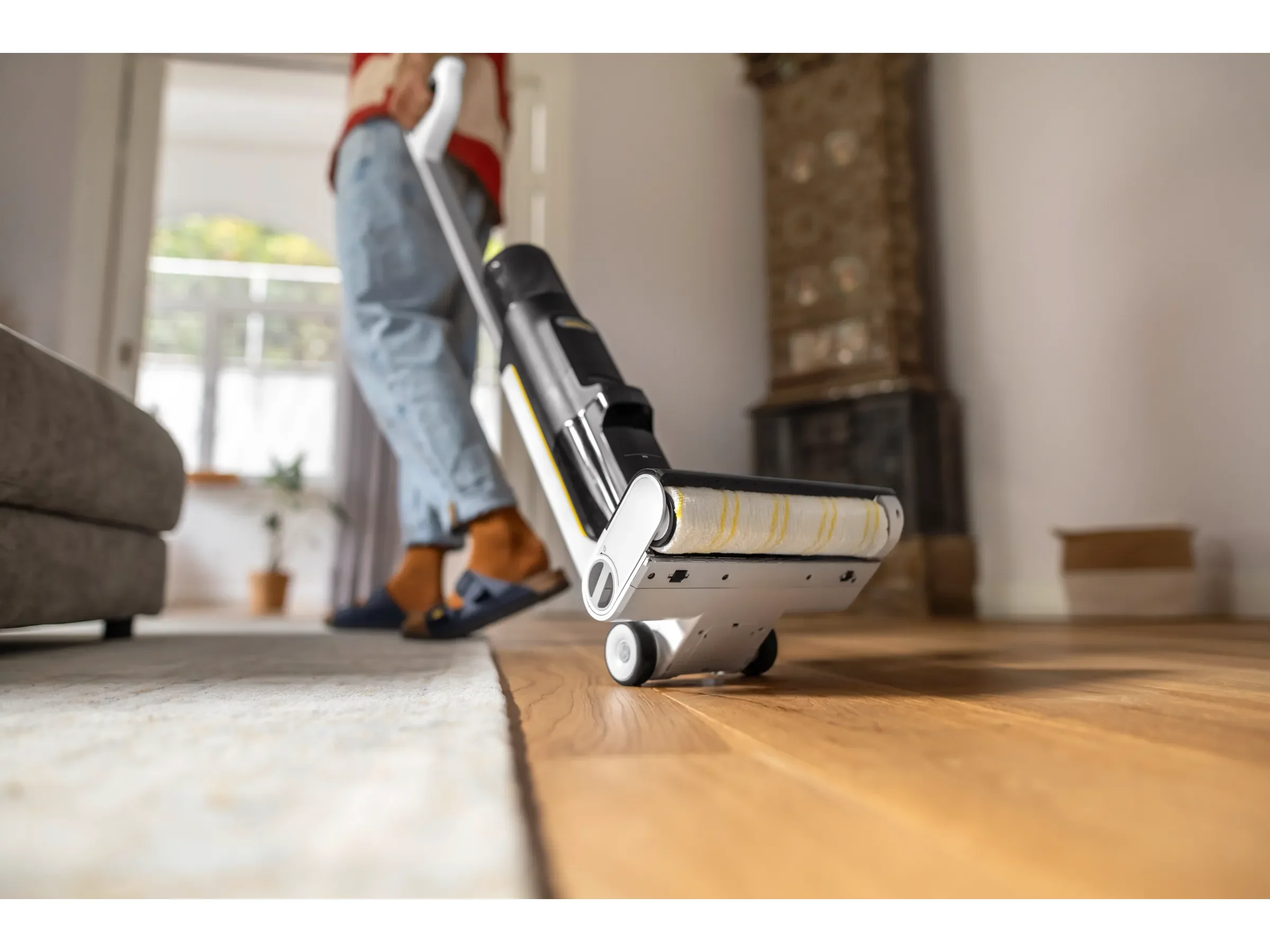 Der FCV 3 kombiniert Saugen, Wischen und Trocknen in einem Durchgang und sorgt so für eine besonders effiziente Bodenreinigung. Dank Akkubetrieb kann flexibel und kabellos gearbeitet werden – ideal für den gesamten Wohnbereich.