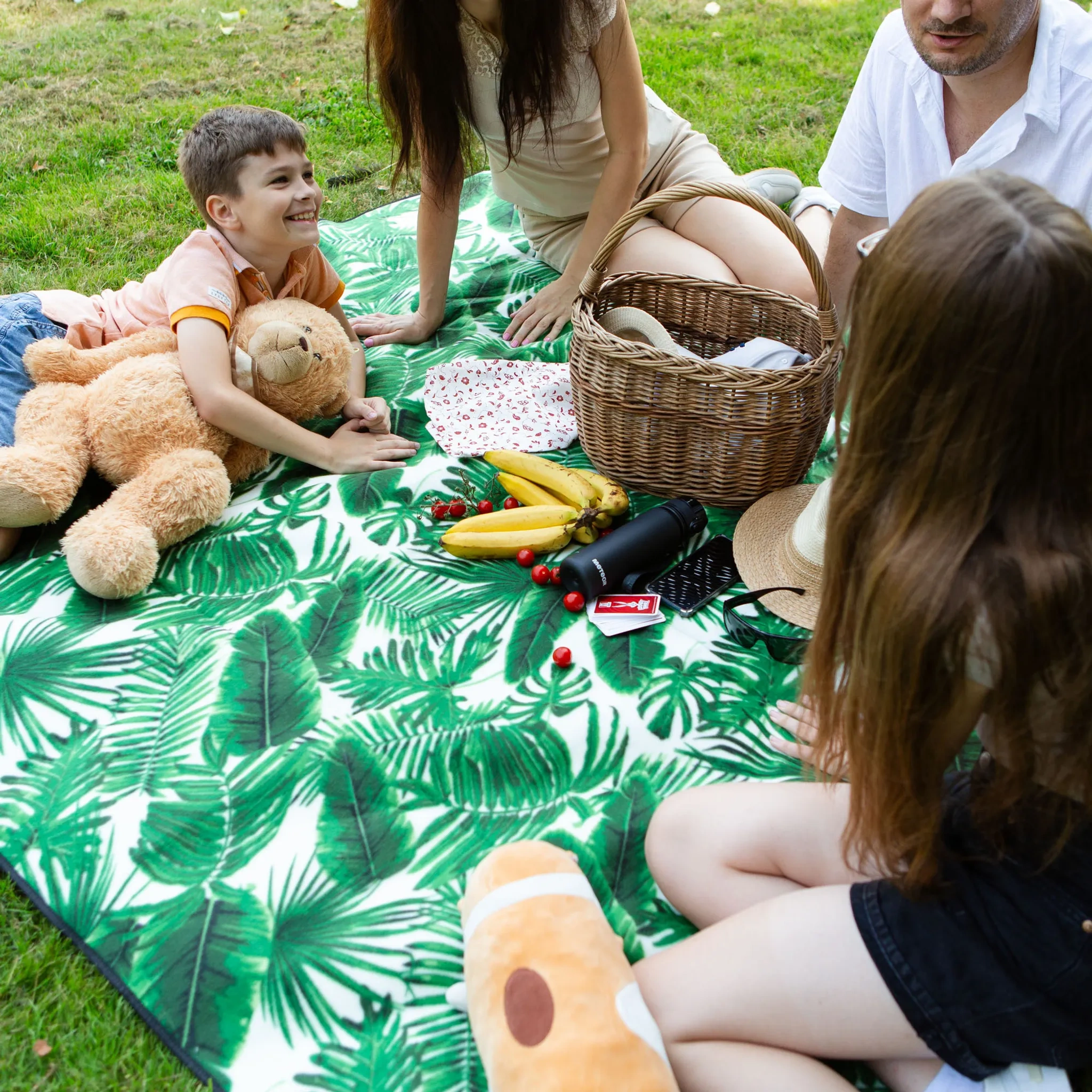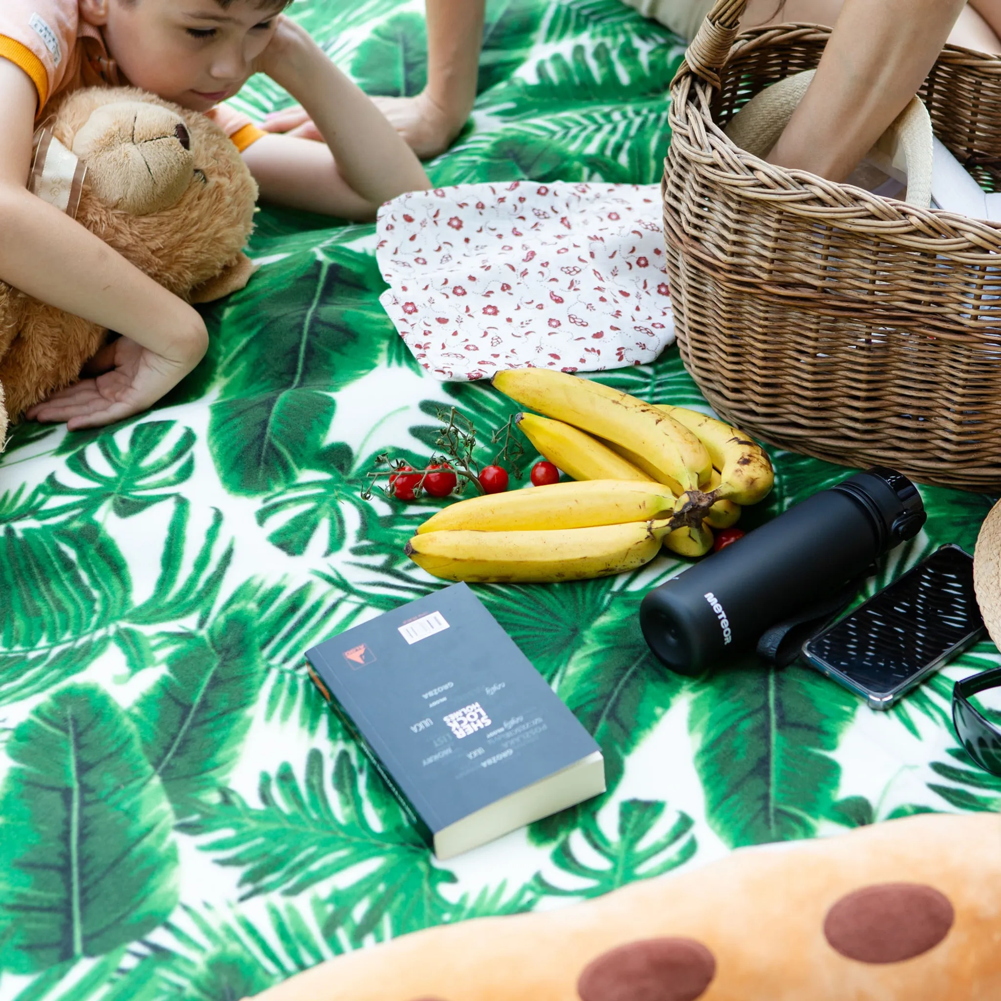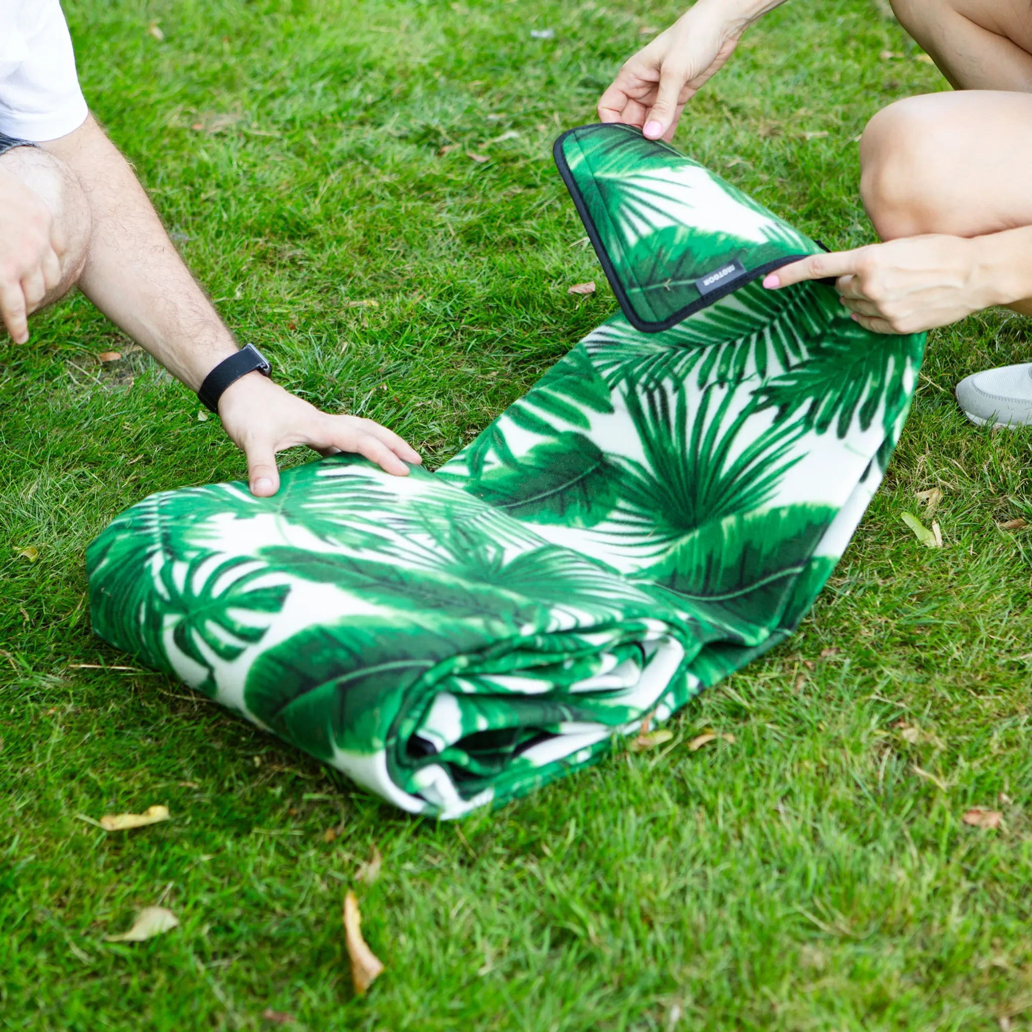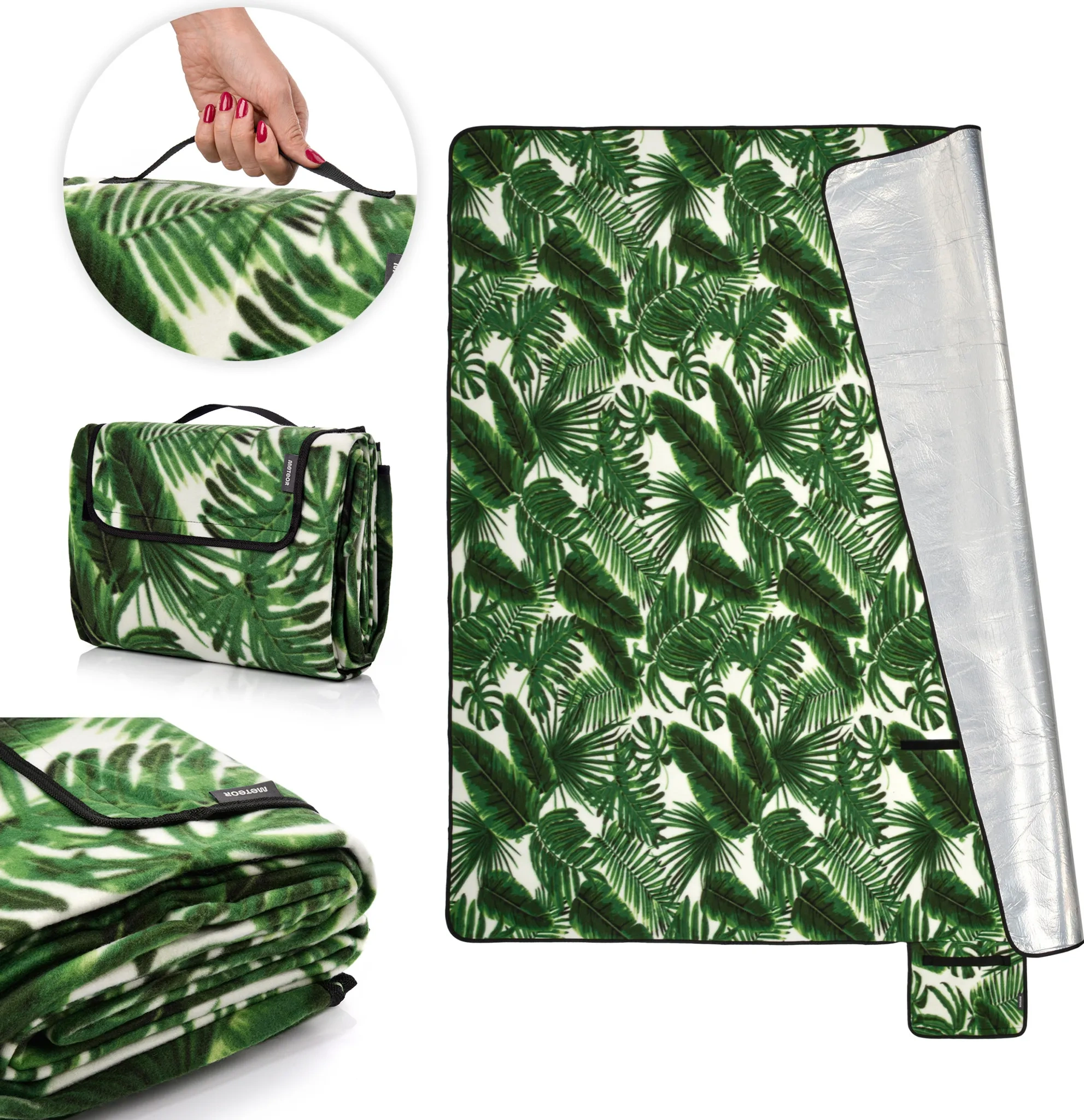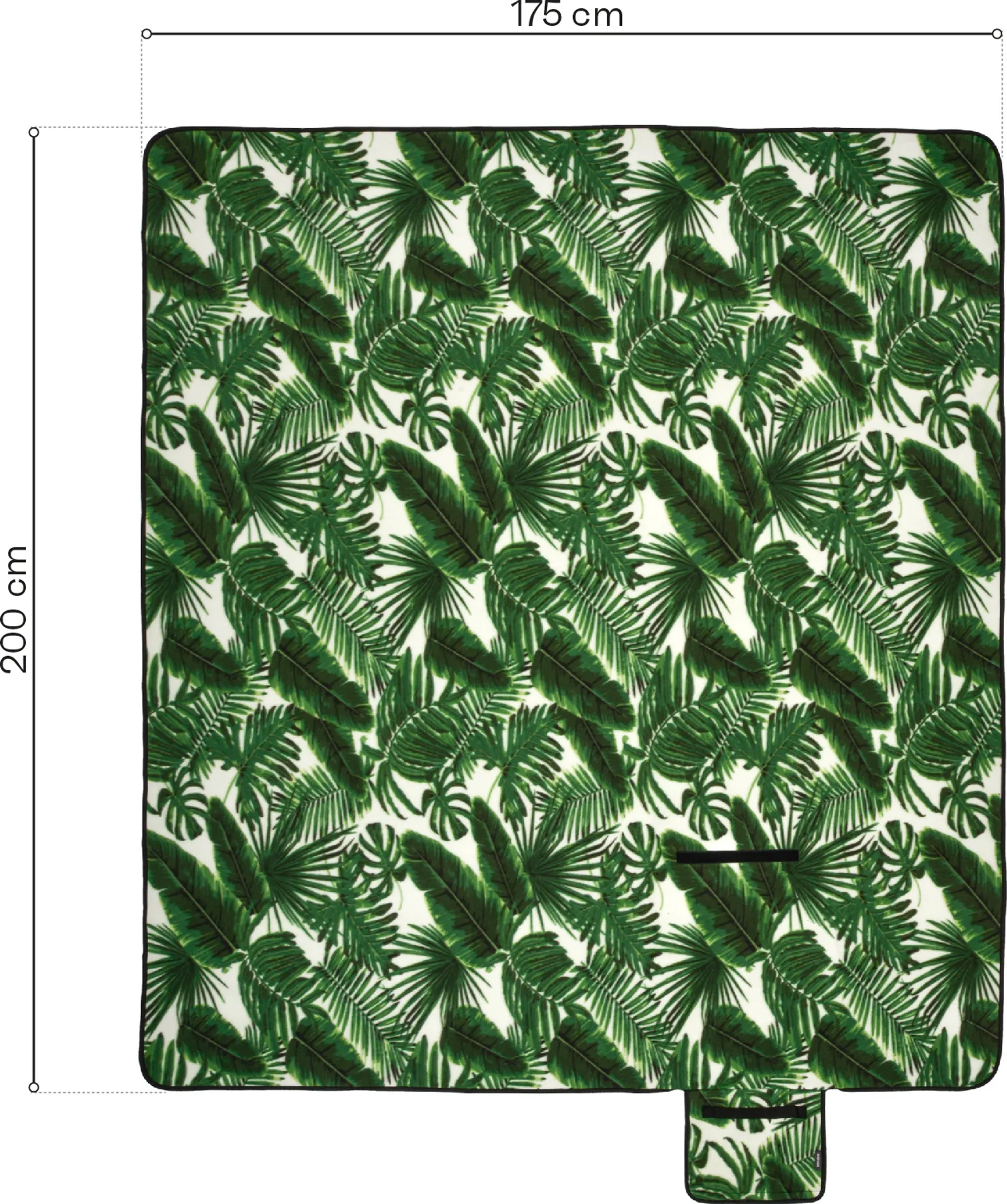 Highlights: Praktisch, kompakt und wetterfest – die perfekte Decke für Picknick, Garten, Camping oder Strand. Das moderne Blätter-Design macht sie zum stilvollen Hingucker im Freien.