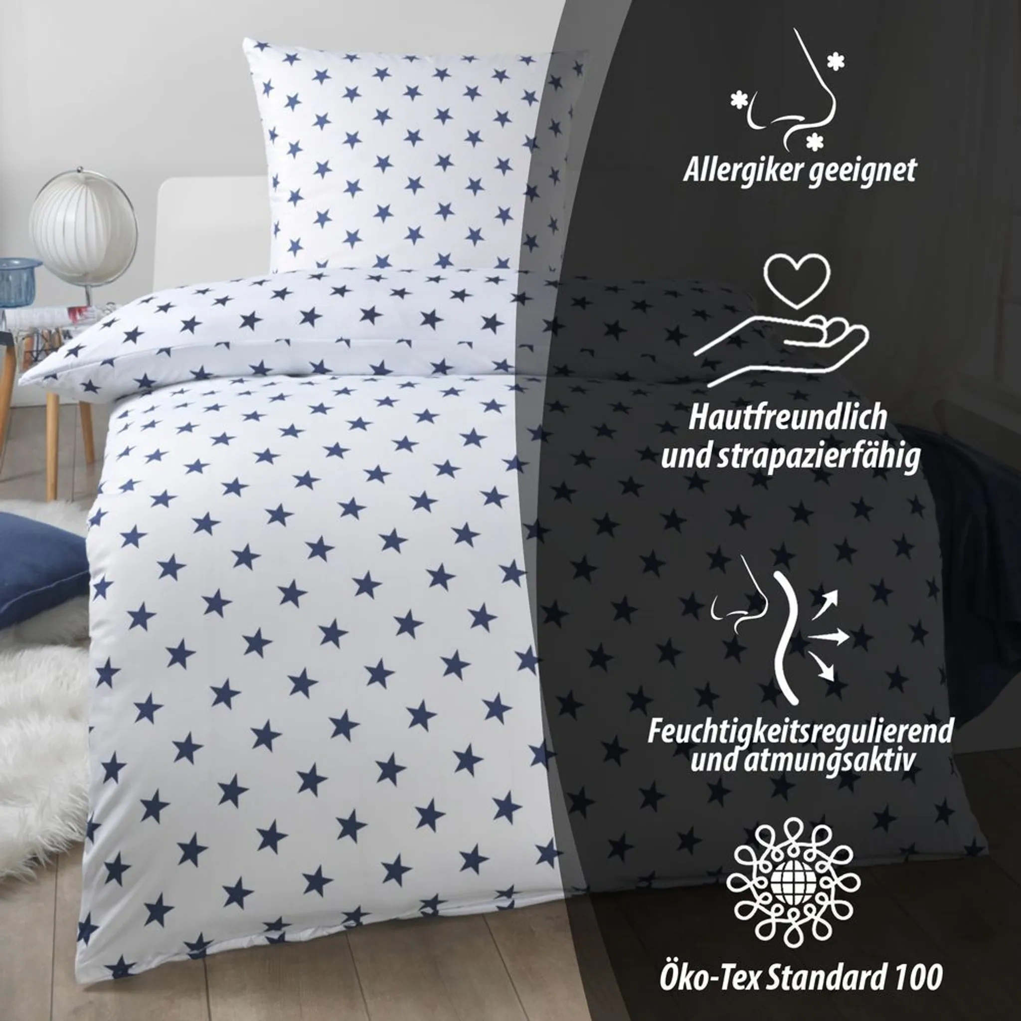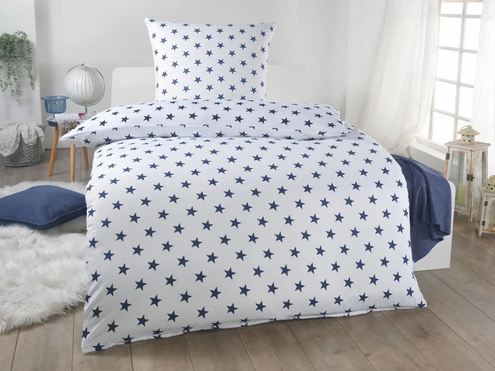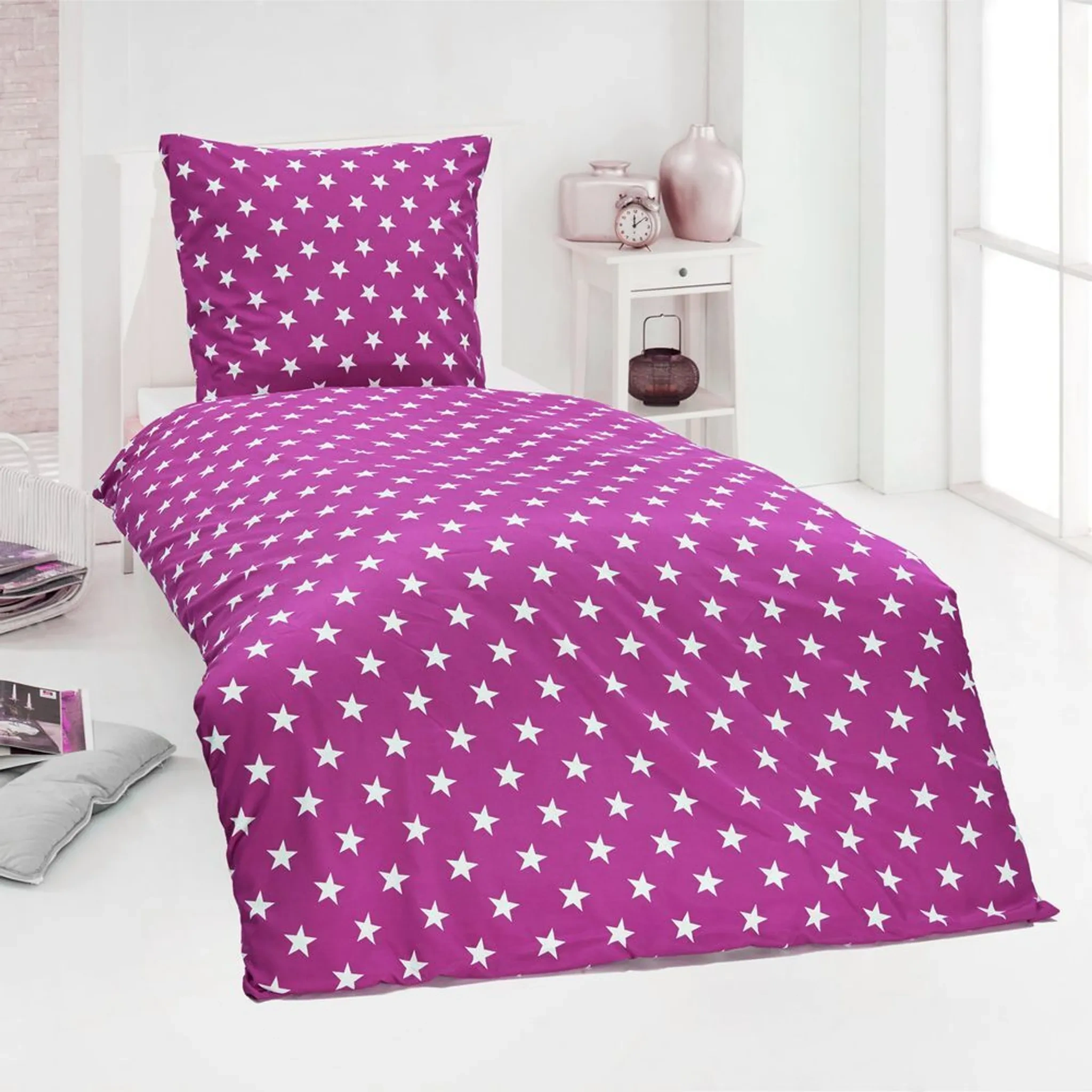 Mikrofaser-Bettwäsche „Stars Pink/Blau“ 135×200 cm – 2-teilig
