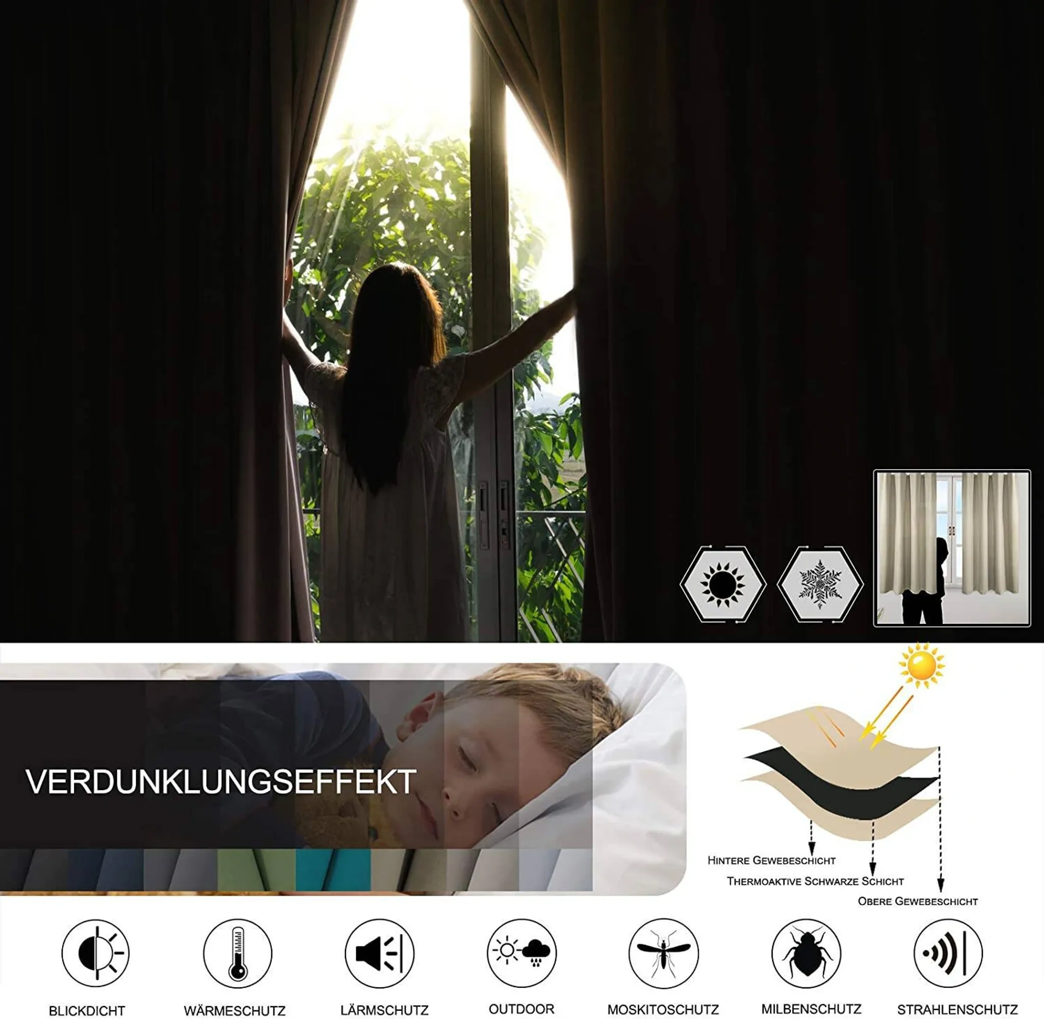 Der elegante Thermovorhang von WOLTU setzt in Champagner dezente Akzente und sorgt für erholsame Dunkelheit. Das dreilagige Polyestergewebe (250 g/m²) mit eingearbeiteten Verdunklungsfasern schützt die Privatsphäre, reduziert Licht und verbessert die Raumakustik – ideal für Schlaf- und Wohnzimmer.