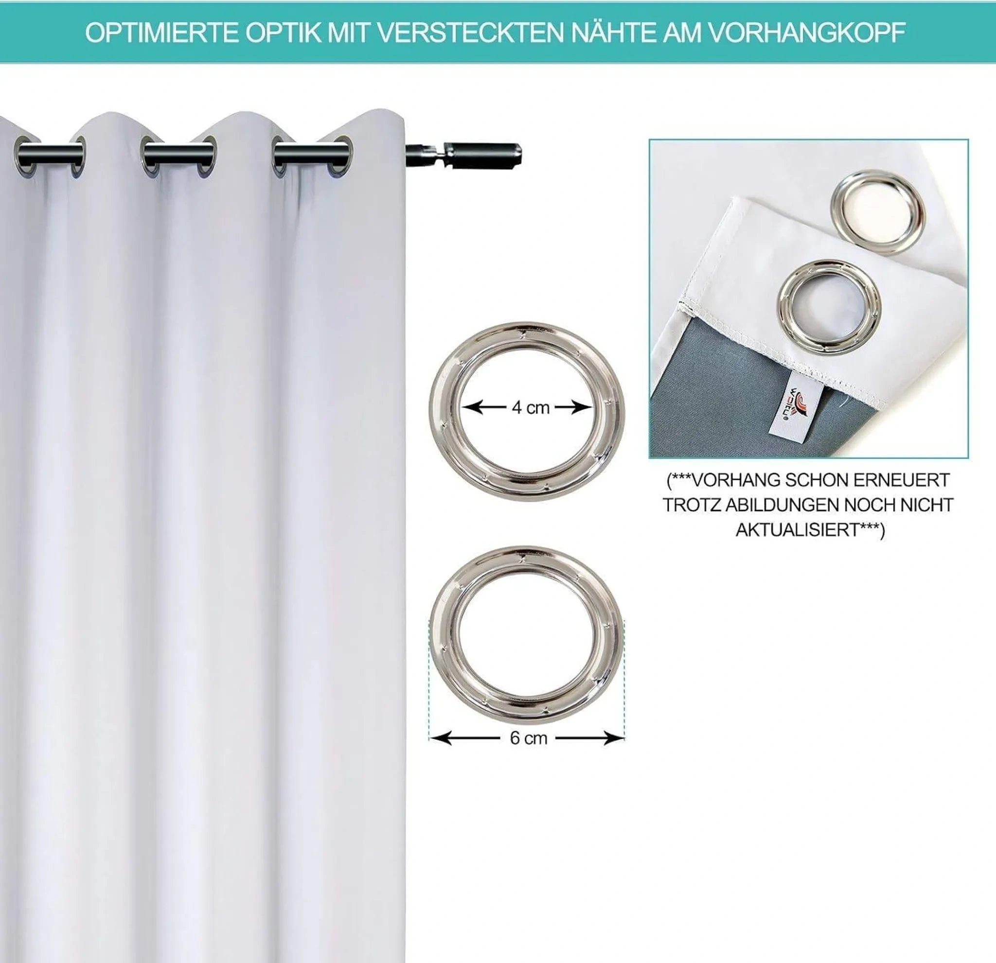 Die Thermobeschichtung wirkt kälte- und wärmeisolierend: im Sommer angenehm kühl, im Winter energiesparend. Die 8 silberfarbigen Ösen (Innen-Ø 4 cm) sorgen für einen gleichmäßigen Faltenwurf und eine schnelle Montage an der Gardinenstange.