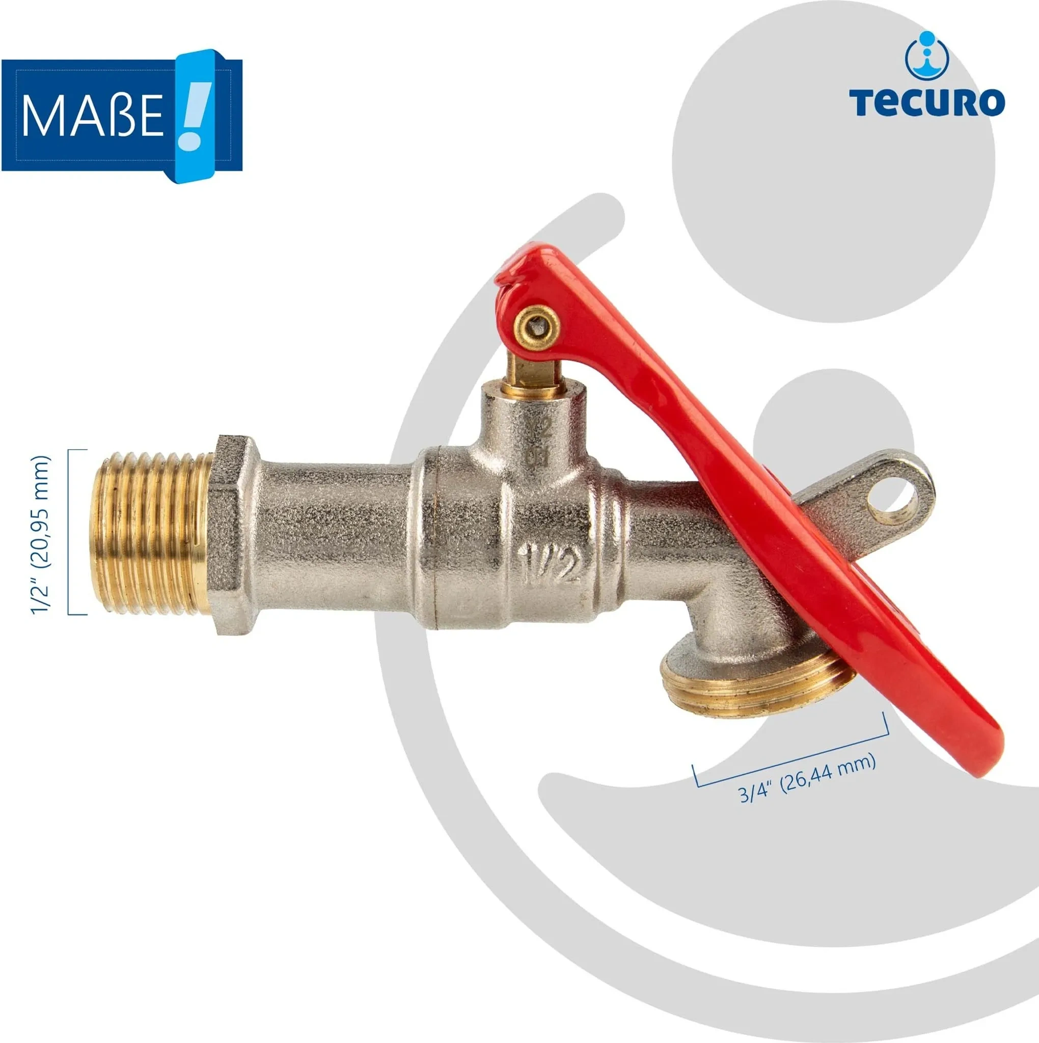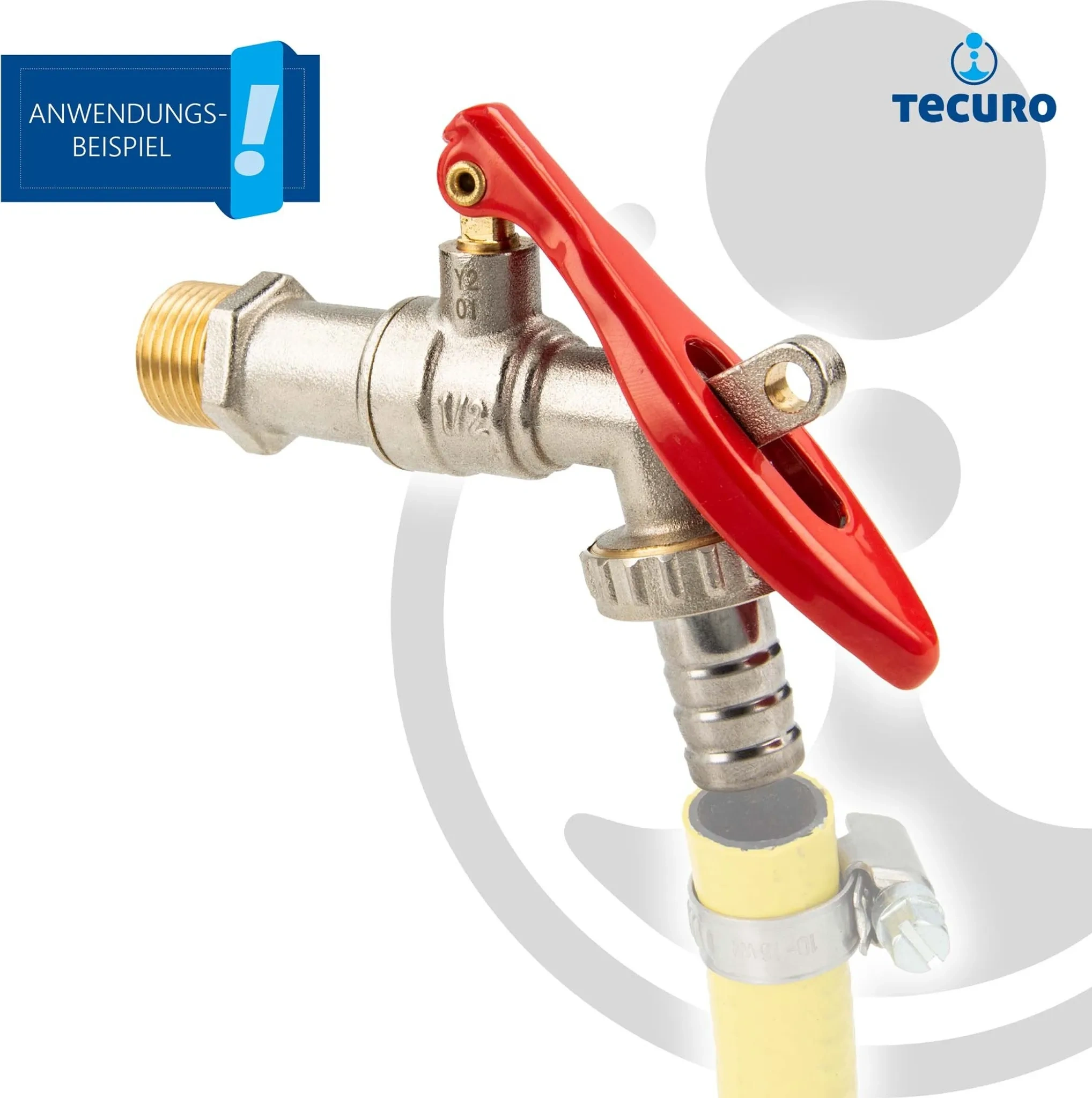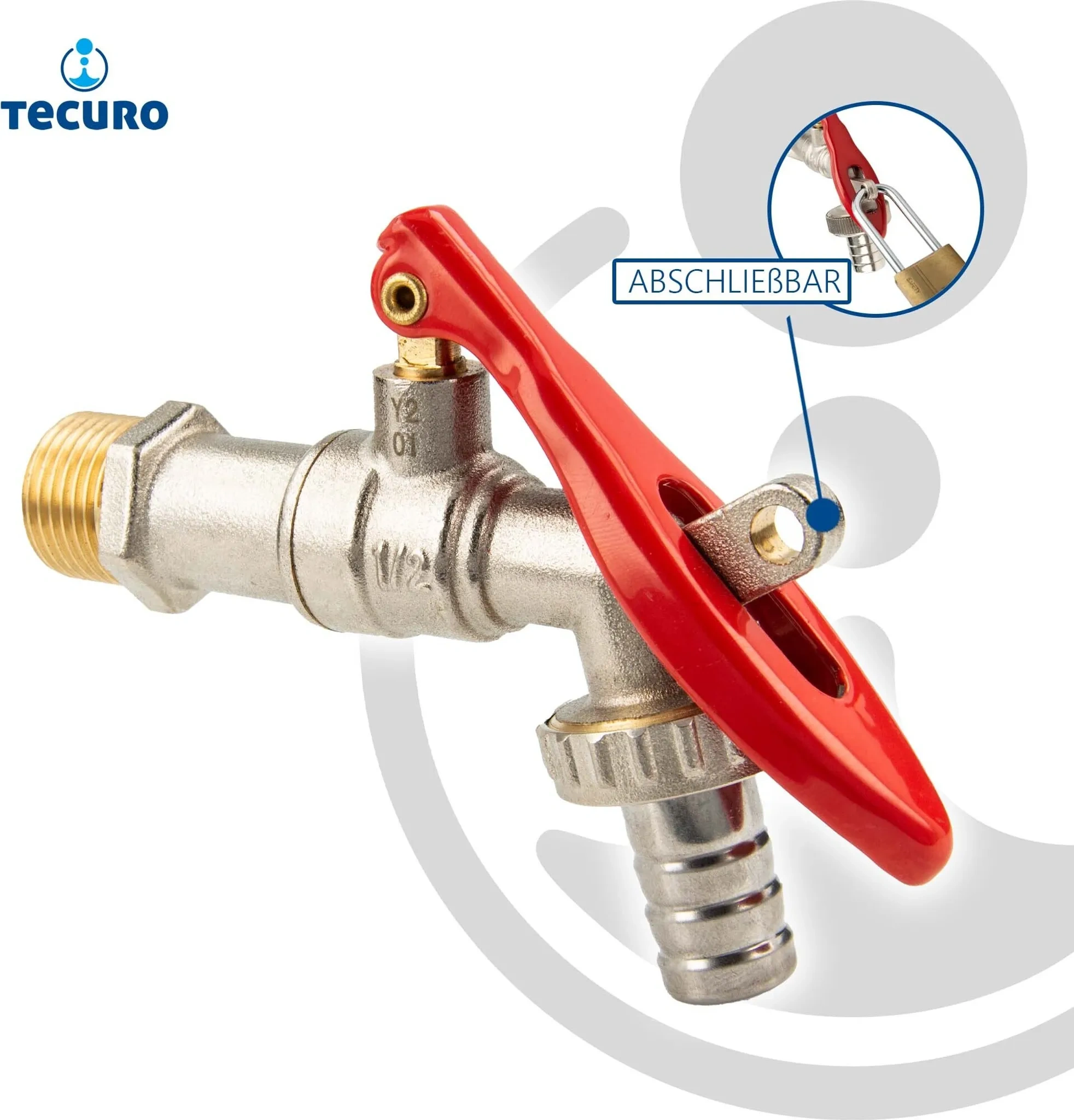 Produktinformationen "tecuro Auslaufventil Kugelventil 1/2 Zoll – mit abschließbarem Hebel, matt verchromt"
