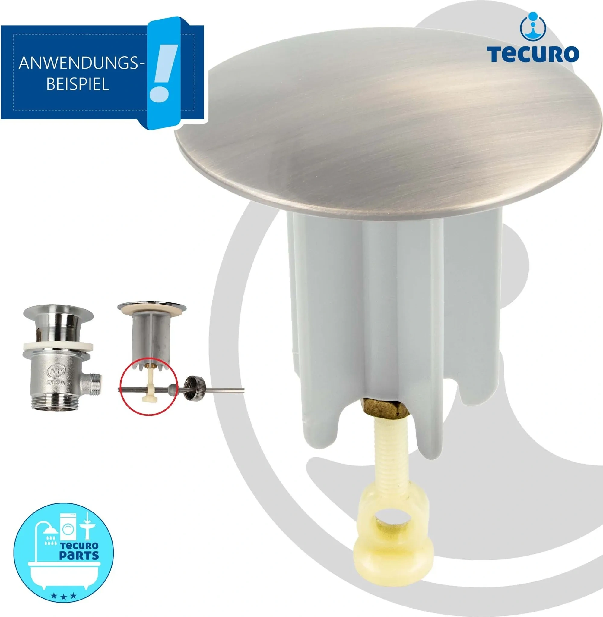 Schwere Metallausführung • Mit Haarsieb • Höhenverstellbar Der tecuro Excenterstopfen mit einem Durchmesser von 40 mm eignet sich perfekt für 1¼ Zoll-Ablaufventile. Er ermöglicht das einfache Öffnen und Schließen des Wasserablaufs über einen Hebel- oder Drehmechanismus. Die hochwertige, verchromte Oberfläche verleiht ihm einen modernen Glanz und schützt zuverlässig vor Korrosion. Dank der höhenverstellbaren Stellschraube und der robusten Kontermutter lässt sich der Stopfen optimal anpassen. Ein herausnehmbares Haarsieb sorgt für leichte Reinigung und hygienische Nutzung – ideal für Bad oder Gäste-WC. Spezifikationen TypExcenterstopfen für Waschbecken Durchmesser40 mm AnschlussFür 1¼ Zoll Ablaufventil MaterialMessing, Edelstahl, Kunststoff OberflächeHochglanzverchromt BesonderheitenMit auswaschbarem Haarsieb, höhenverstellbar Gewichtca. 80 g Highlights: Hochwertige Metallausführung, verstellbare Schraube, austauschbares Haarsieb, langlebige Dichtung aus EPDM. Lieferumfang Im Paket1 × Excenterstopfen Ø 40 mm mit Haarsieb