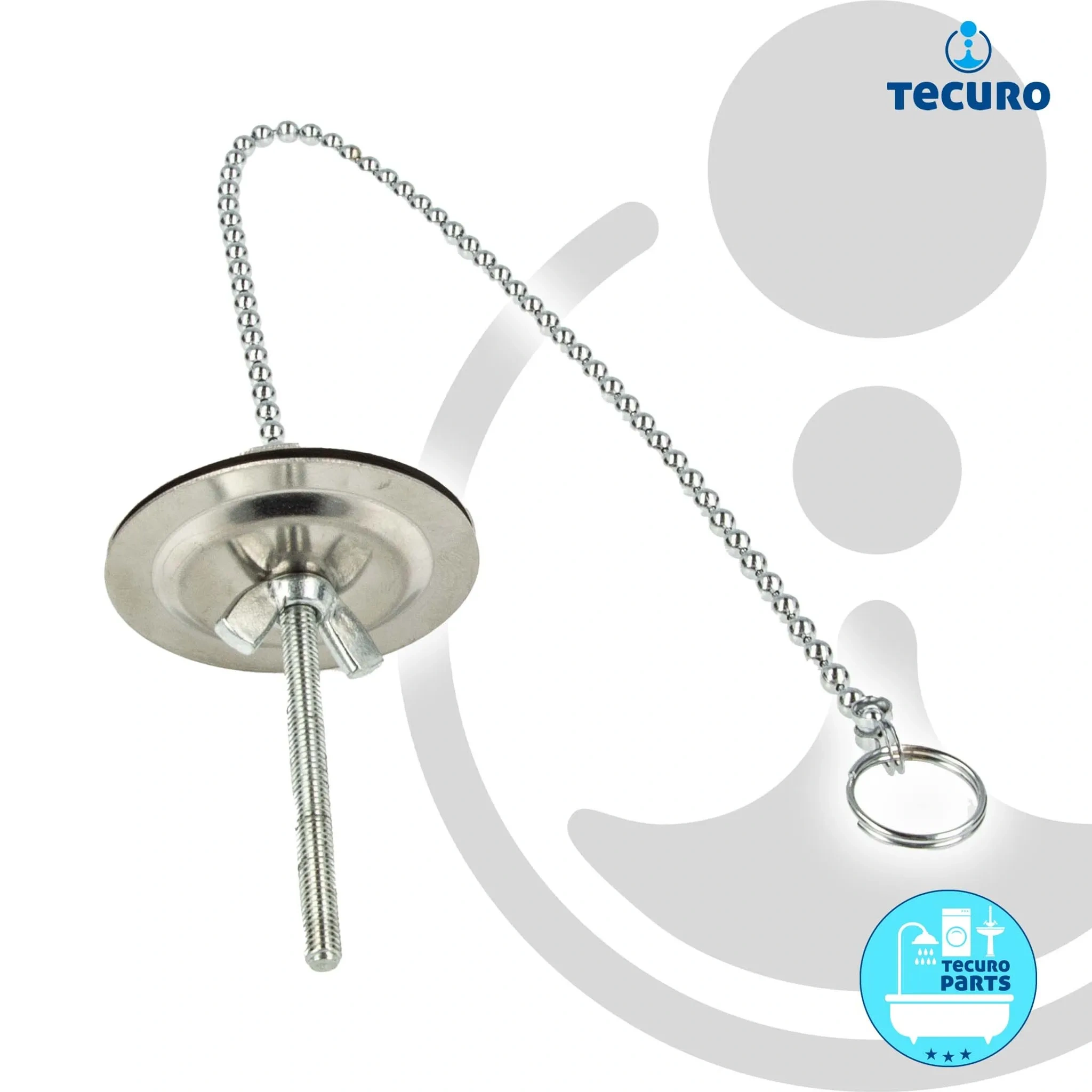 Produktinformationen "tecuro Ventilstopfen Kugelkette 30 cm × Ø 3,6 mm – Verchromt, mit Deckrosette"